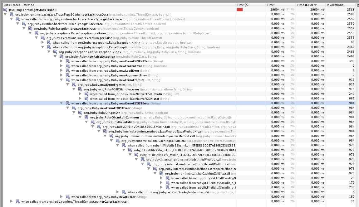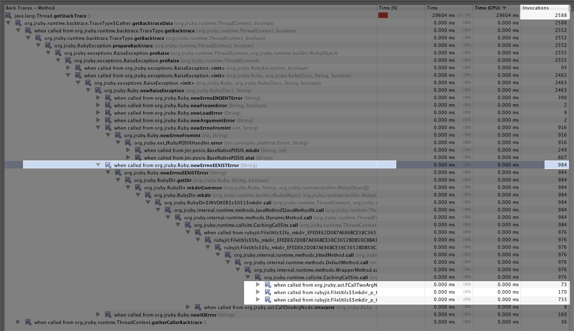 is responsible for 73 invocations. This is JRuby acting as an