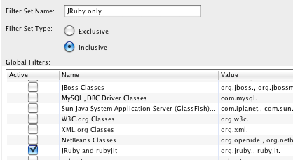 applies to org.jruby., rubyjit.. This will limit profiling to Java