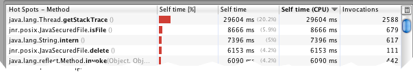 interpreter calls cluttering up the profile (the Java profiler cannot